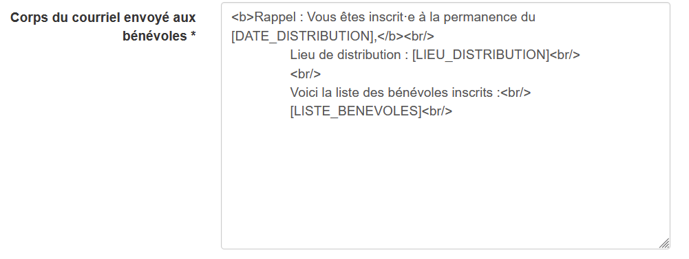 | Summary | 0000150: Langage html dans le corps des mails automatique pour les permanences | ||||