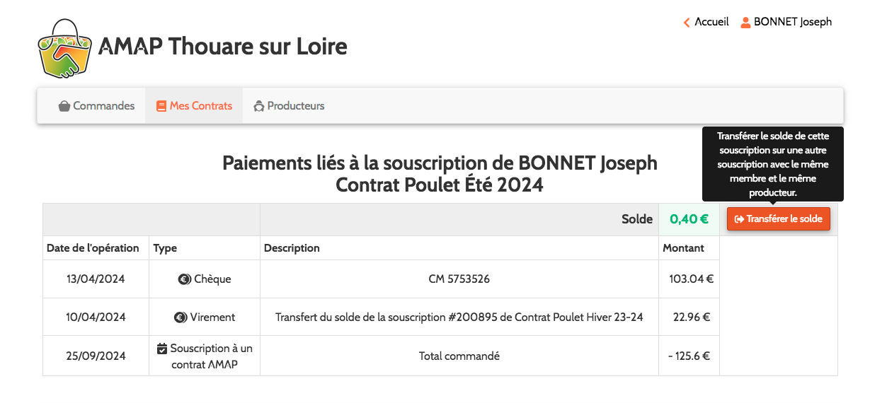 | Description | Un adhérent sans accés à la gestion des contrats, consulte le détail de paiements liés à une souscription. Le bouton "transfert de solde " s'affiche. S'il l'active, il s'affiche "vous n'avez pas accès à la gestion des contrats" | ||||