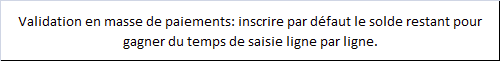 | Description | Ajouter un bouton "Saisir tous les soldes" afin de remplir la colonne Montant du paiement avec le solde de chaque mangeur | ||||