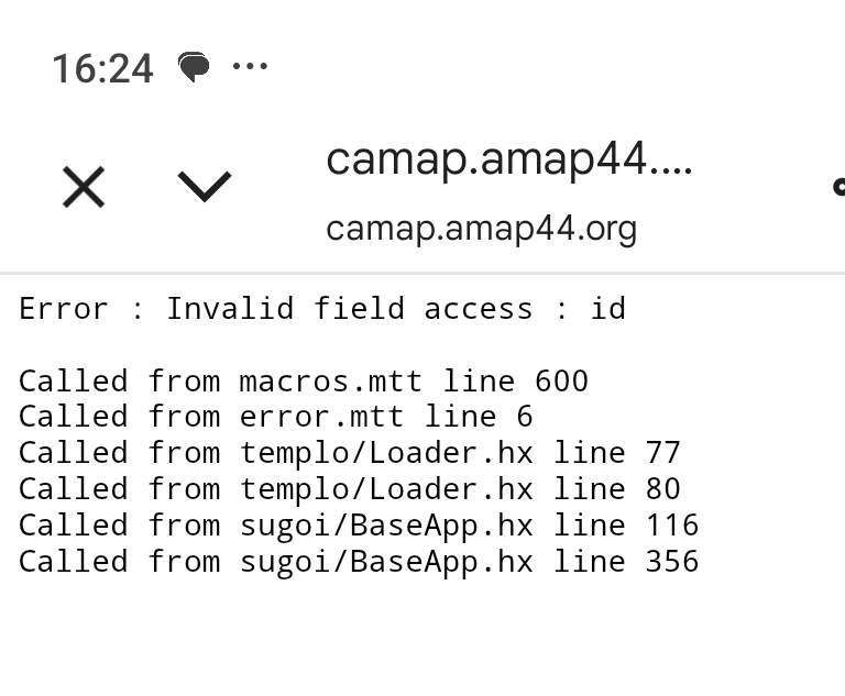 | Description | Depuis cet après-midi je n'arrive pas à me connecter à CAMAP, j'ai l'écran d'erreur en PJ | ||||