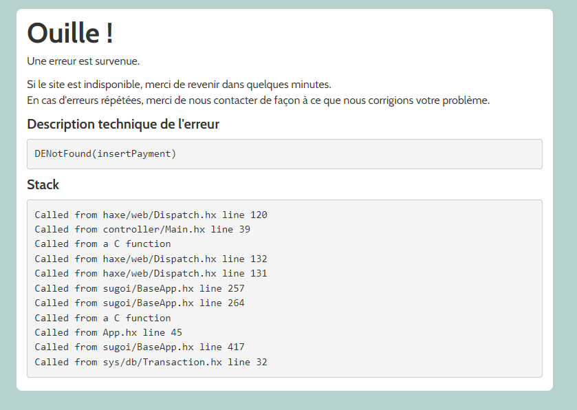 | Steps To Reproduce | URL: http://camap.amap44.org/transaction/insertPayment/1 Membres → cliquer sur un membre → Solde: Détail Paiements → Créer un Paiement | ||||