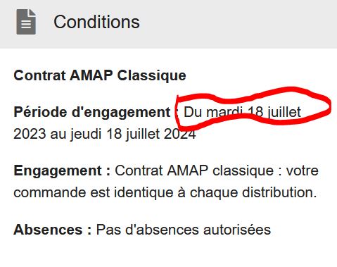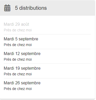 packages\front-core\src\modules\csaCatalog\containers\CsaCatalogSubscription.tsx Les distributions sont indiquées dans le cadre à gauche, avec en gris les distributions passées et en noir les distributions à venir. |